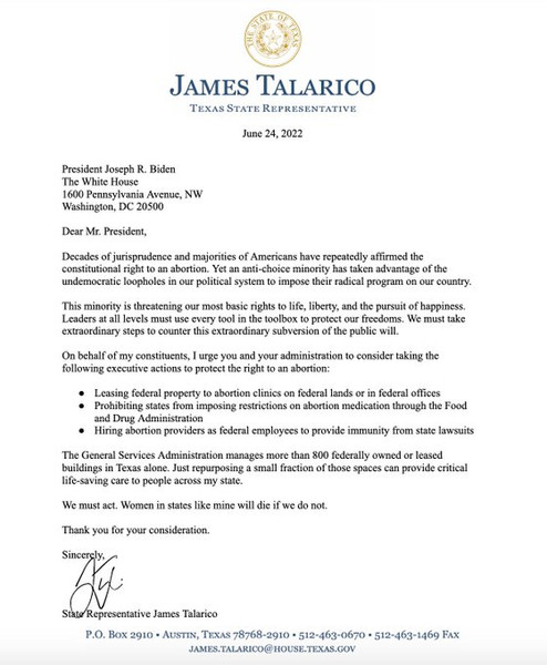 AUSTIN, Texas (Texas Insider Report) — Democratic Texas Senate nominee James Talarico once called on then-President Joe Biden to use federal buildings as abortion clinics in Republican states in a resurfaced 2022 social media post.