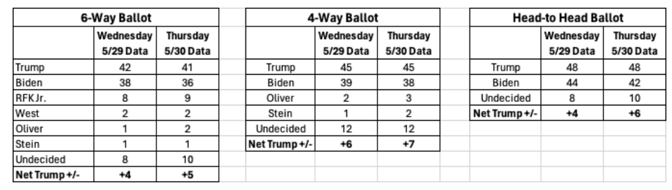 And similarly, President Trump's lead in every ballot iteration has not changed statistically.